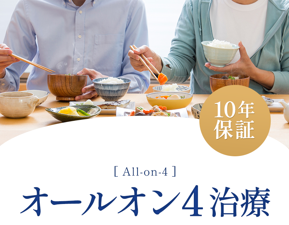オールオン4の登場により、世界が変わりました。4本のインプラントですべての歯を支えるというこの画期的な治療システムは、1日で患者さんに歯を装着することができます。その日の夜から食事を楽しむことができることは何より患者さんの感動を生み出します。