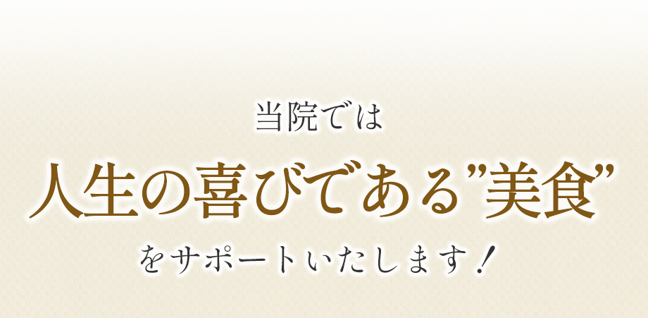 人生の喜びは食にあります。ご家族とご友人と楽しい時間を過ごすために、美味しい食事を味わえることが最高の喜びだと私は考えています。いまその喜びを感じられない人は、ぜひご相談ください。明るい未来についてお話ししましょう。