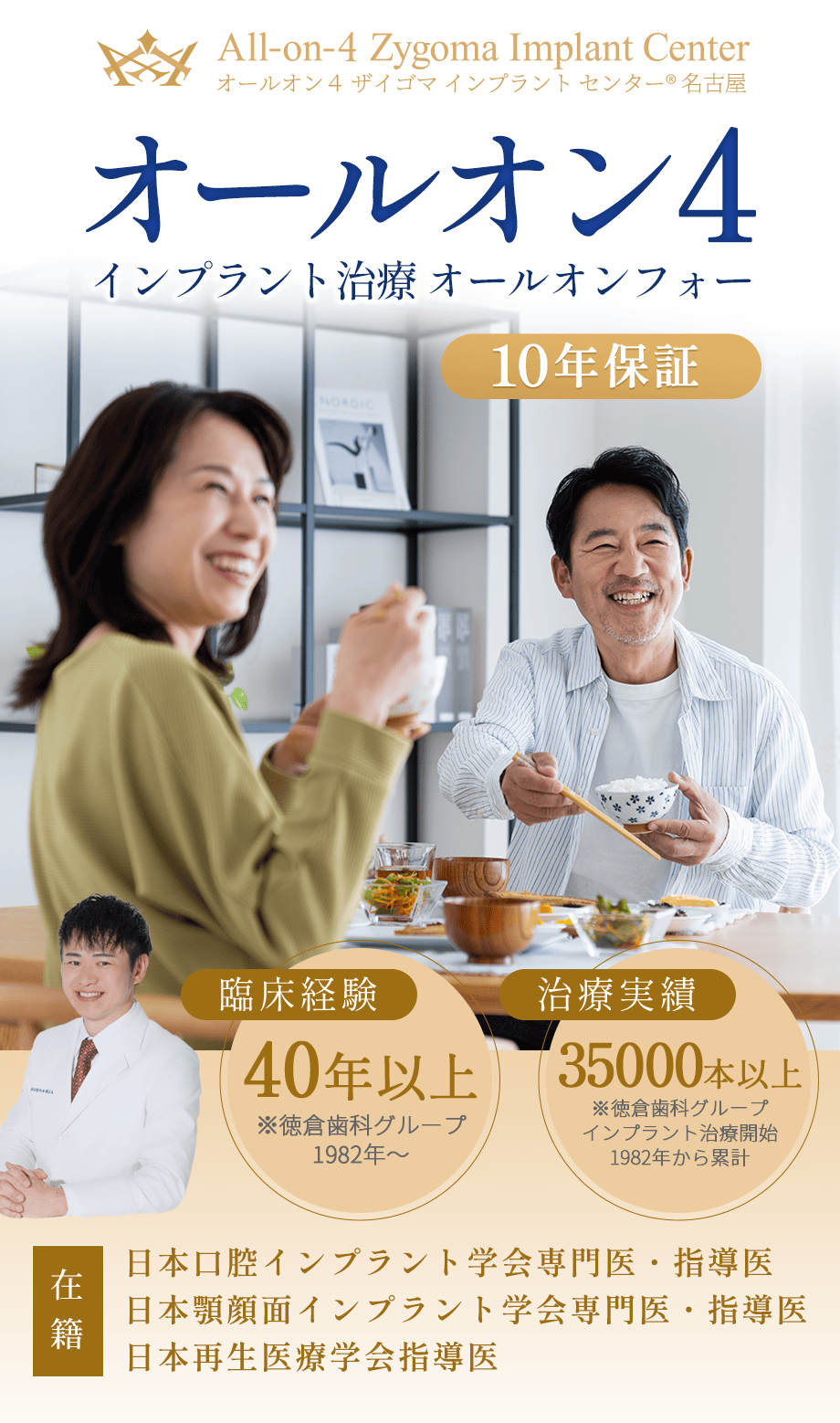 オールオン4ザイゴマ・インプラントセンター名古屋では、All-on-4やザイゴマインプラントのみならず1本単独のインプラント治療も含めて、1976年グループ創業以来、多くの患者様の対応を図ってきました。